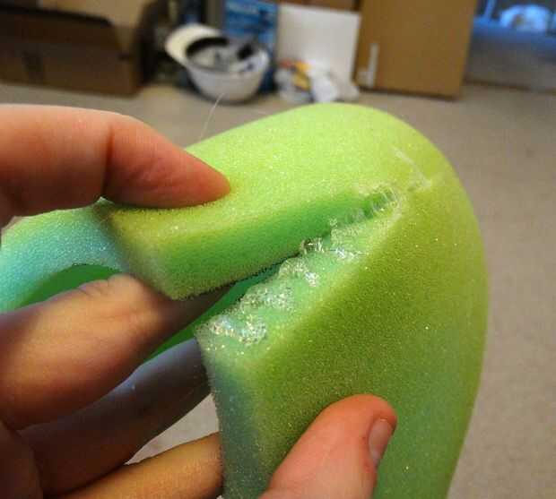 El primer bono será la ranura arriba de la cabeza. Aplicar un garabato de pegamento caliente a un lado de esa muesca, les presión contra el otro lado. Espera hasta que se enfríe. Si tienes cubre dedo de silicona de protección para el trabajo de pegamento caliente, puedes hacerlos. Puesto que la espuma es porosa, a veces pegamento voluntad venir a través de los agujeros y tocar sus dedos cuando usted está presionando duro.