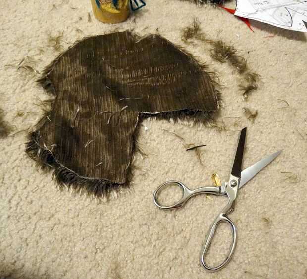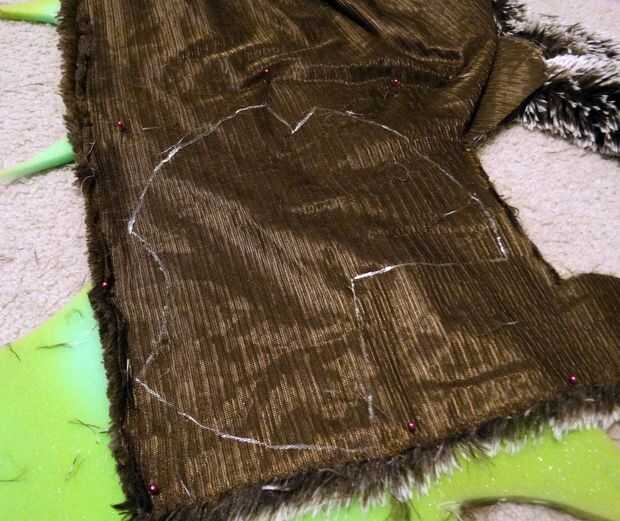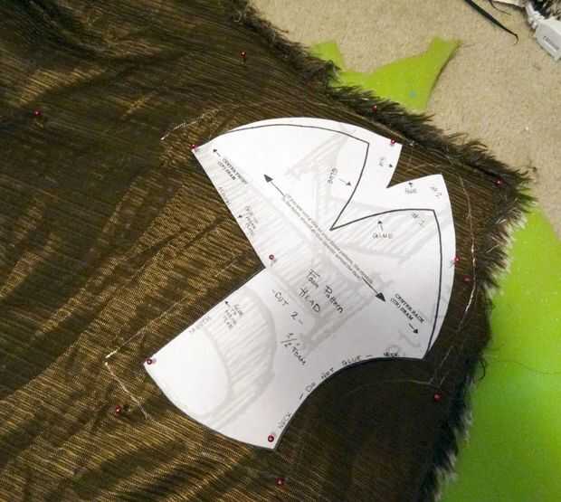 Cepille cuidadosamente la piel lejos del borde de su primera pieza de patrón por lo que se puede trazar una imagen del espejo sobre la tela.