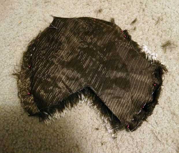 1) pin y coser las muescas en la parte superior de la cabeza.