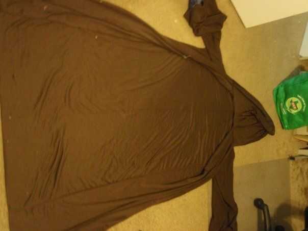 Pegar tela freaky (que es lo que su llamado, su vendido durante halloween. Su escalofriante decoración para las paredes) para espalda y brazos, parecen desheveled.