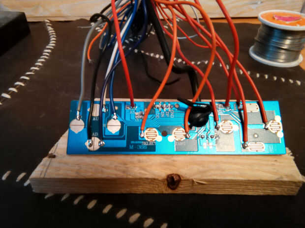 En este punto aparte tomé el mando SNES y tiró de los cables de ella. Sandwitched el tablero entre dos piezas MDF para evitar movimiento. Hay un instruclable para esto de MrHermito, por favor revisa los detalles para obtener más información: