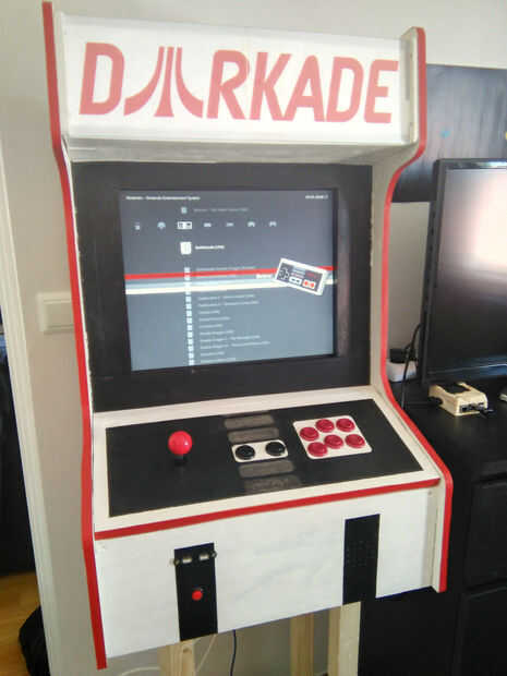 construir un gabinete de la arcada para alrededor €200 ($250)Todo comenzó con algunos mandos SNES y un emulador de SNES, pero todo tiene un poco fuera de mano.Después de que hubiéramos hecho algunos juegos de SNES con algunos gamepads SNES de imitaci