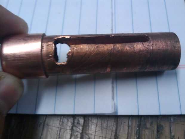 Utilizando una dremel cortar L en forma de ranura en ambos lados de la tubería de cobre.