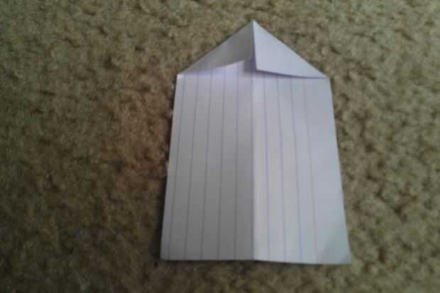 Doblar las esquinas de dos hasta el pliegue del centro, luego doble los lados hacia el centro.