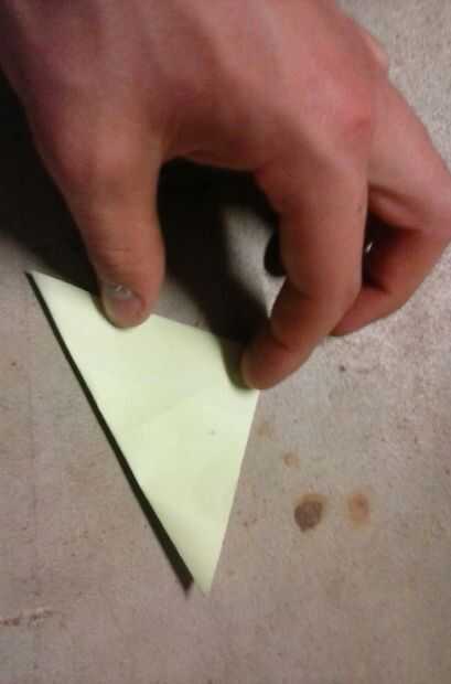Ahora doblar la nota pegajosa según las fotos de arriba. Se trata de las aletas.