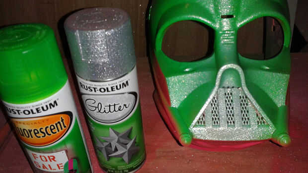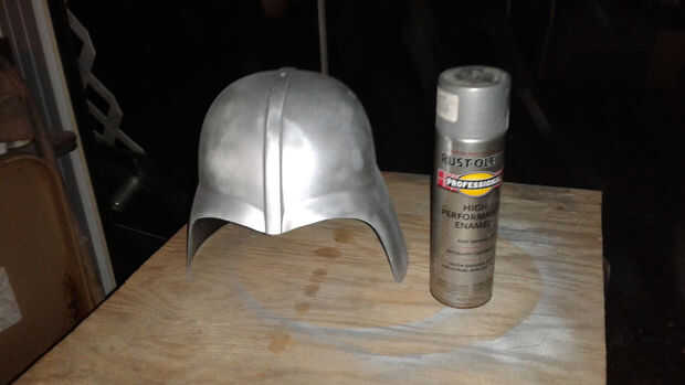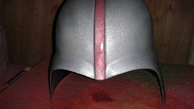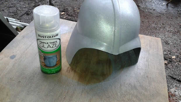 Había pintado el casco con la cartilla. Todas las pinturas que usé eran de productos Rustoleum. Me lo dieron varias capas de pintura glitter Plata y había sellado con esmalte grueso triple. I enmascarados fuera de la cresta del centro del casco y rociar con purpurina rosa y luego dio todo una capa final de esmalte triple espesor para sellar el brillo.