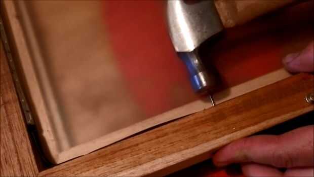 No tengo hardware de lujo para sostener el vidrio usé clavos llano.