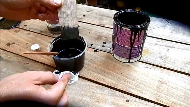 Si no tienes la pintura como yo, usted puede mezclar pintura con base de aceite negro con laca thinner para obtener la intensidad que usted desee para.