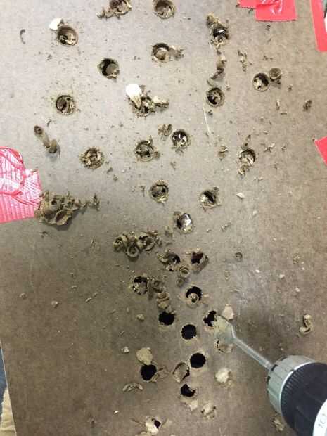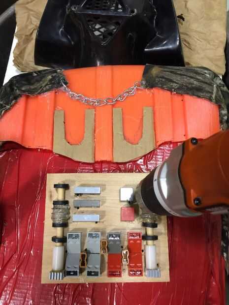 Vacío que forma trabaja cuando se calienta una lámina de plástico en un jig y baje sobre una forma positiva de la forma que desea crear. Como baja sobre el molde, una mesa de vacío (como el reverso de una mesa de air hockey) aspira el aire hacia fuera debajo del plástico, formando alrededor de la forma del molde. Este es un proceso muy útil para hacer de los casos, los paneles grandes y empaquetado. Para que trabaje en esto, se debe perforar algunos agujeros en la parte posterior de la Junta de la placa de construcción y en la forma que el aire Ayude a salir a conseguir alto detalle. Inserte la lámina de plástico que todo el Vader parado en. Lo hice con claras y sólidas hojas blancas de plástico. No voy a entrar en cómo utilizar nuestro antiguo vacío específico ya que todos tienen un funcionamiento diferente.