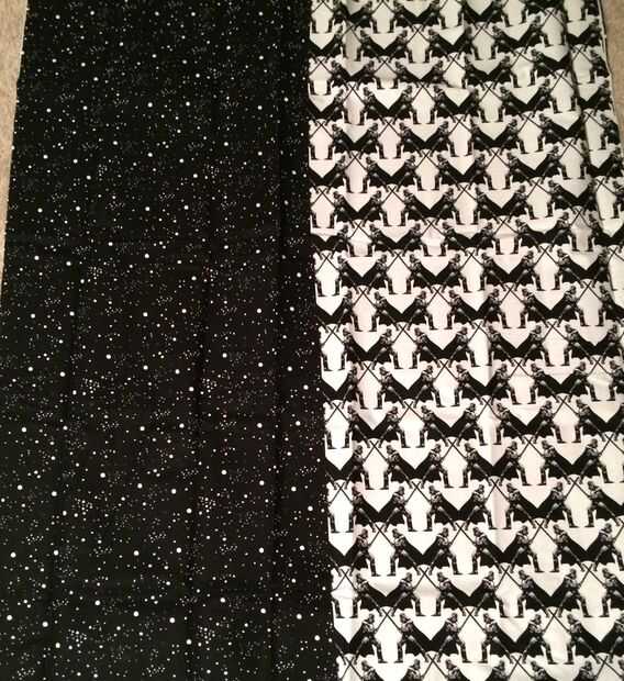 Mi error fue cuando corté la tela de sable de Vader cruzado. Debido a mi espacio de costura (la mitad de un paseo en el armario) y la falta de tiempo suficiente acolchado gobernantes, medí a esta tela demasiado corta por 1-2"(dependiendo de la pieza). Así, frenéticamente buscado un hotel en el sitio web de Joann.com y encontrar la tela de símbolo de Imperio soldado de asalto para reemplazar a la otra tela utilizacen.