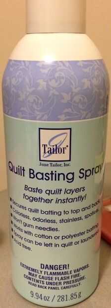 Ahora uso June Tailor edredón hilvanado spray en todos mis tejidos, en lugar de pin los hilvanes. Este producto es menos de $15 al can, y cubre una buena cantidad. Hay otras marcas que son un poco menos caros, pero esta marca es sin duda mi nueva herramienta de acolchado favorito.