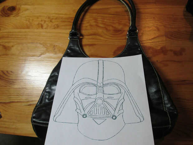 Elegí la imagen particular porque era simple. Para volver a dibujar la imagen en el bolsillo, quería como pocas líneas como sea posible y todavía hacen la mirada de Darth Vader como Darth Vader en el monedero. También había considerado el uso de una plantilla de calabaza, pero le gustaba el aspecto de la pieza de boca en la foto que elegí.