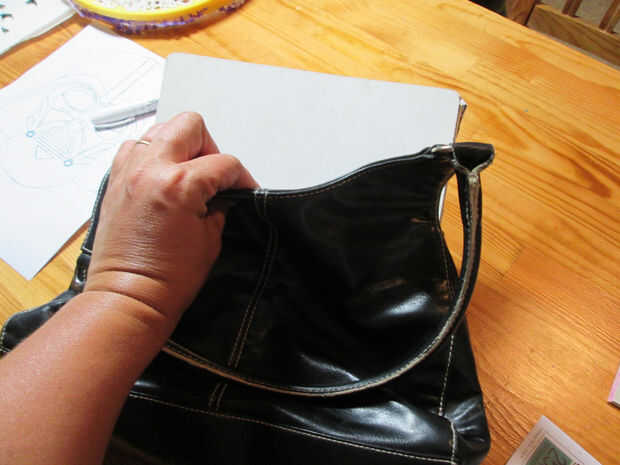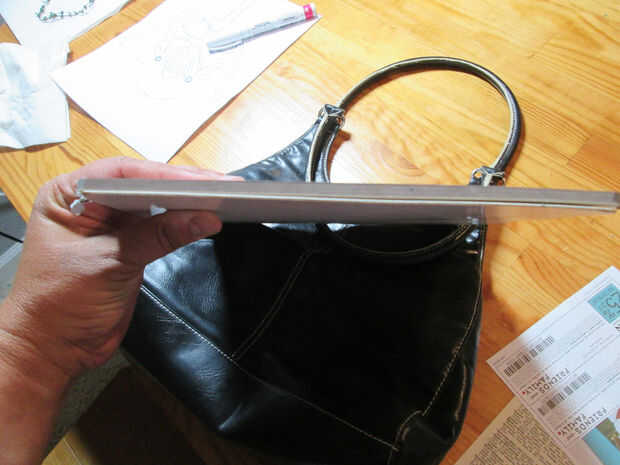 Tuve un 6 pulgadas por 8 pulgadas Bloc de notas en mi escritorio que solía poner dentro de la bolsa para reforzar a. Yo estaba teniendo un tiempo difícil mantener la cartera de doblar sobre sí mismo usé lo que tenía disponible para las marcas se colocaba donde quería.