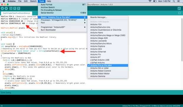 Paso 3: Cargar código para el Arduino Mini Pro - NeoPixel difusión basado en sonido