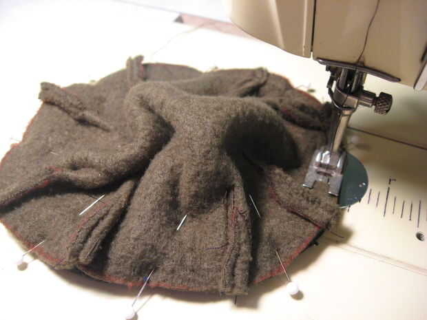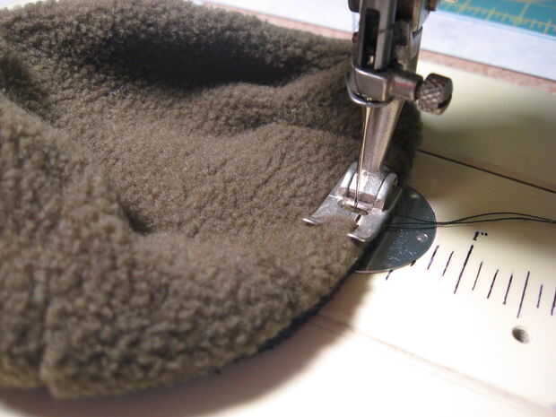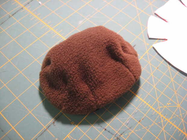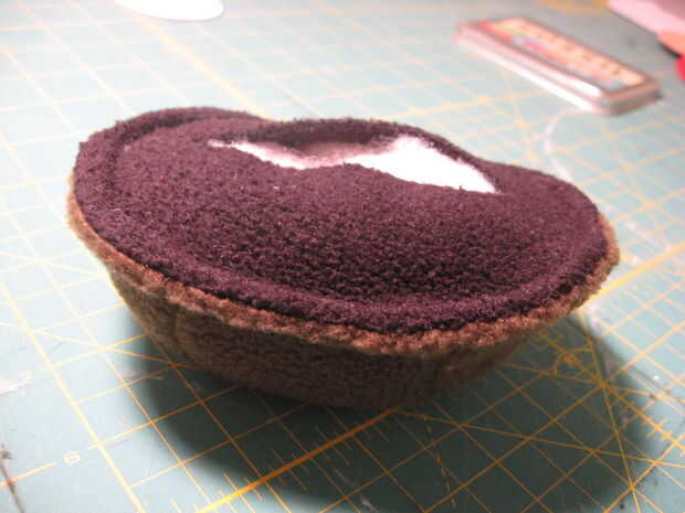 Al girar el carcasa derecha-lado-hacia fuera, debe tener algo similar al blob lanoso en la segunda foto. Para hacer este look limpio y aseado, coser alrededor del borde exterior para crear un bonito labio tortuga concha (tercera foto).
