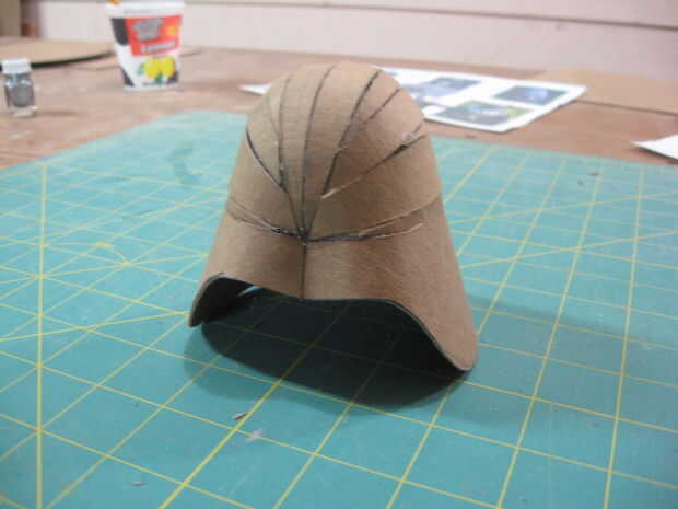 Si usted está interesado en hacer uno, hay un patrón de la pieza principal casco incluido en el PDF en el paso 11. Esta es la pieza que se muestra en las segunda y terceros fotos aquí (el patrón adjunto incluye algunos cambios que tenía que hacer el camino con el mío. That's por qué parece ligeramente diferente de la pieza en mis fotos).