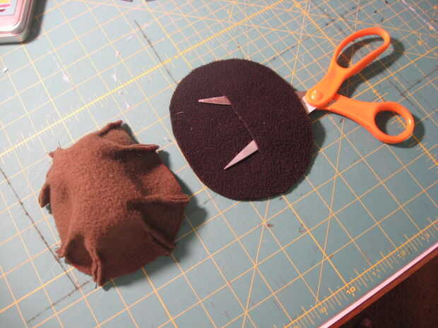 Antes de coser la parte superior y la parte inferior de la cáscara Junta, usted necesita hacer un corte en la pieza que se convertirá en la parte inferior de la cáscara. Se rellenará la cáscara a través de este orificio (cuarta foto).