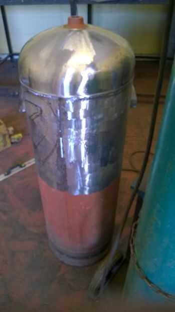 tuve un gran 47 kg gas botella colgando alrededor de mi taller... así que decidió esto tendría que hacer. Lamentablemente no tome muchas fotos así que muchos de los detalles de la construcción no están documentadas. Comencé dibujando hacia fuera de las principales características de la máscara DV... luego cortar utilizando una cortadora de disco de 4.5"(disco de 1mm)