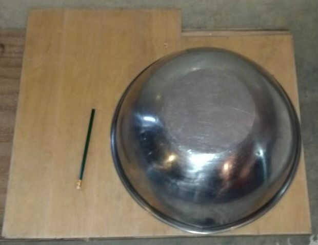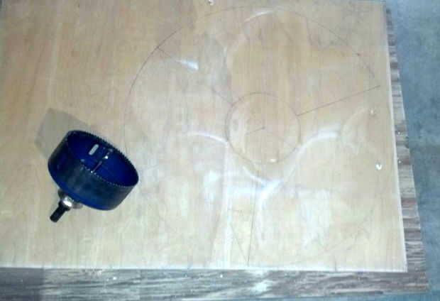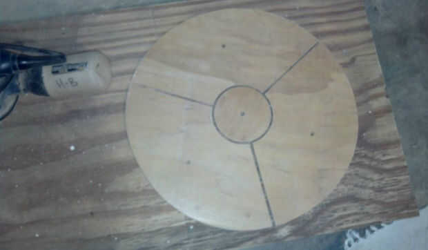 En la luan, dibuje un círculo. (Yo usé un tazón como mi plantilla que pasó a ser un buen tamaño, aproximadamente 16" de diámetro).