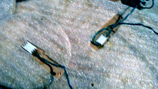 - Plan de enrutamiento de los cables alrededor de la blanco por lo que puede preparar la longitud derecha de 3 cables. No olvide tener en cuenta el hecho de que el alambre pasa a través de los agujeros que no están en el centro de piezas de destino porque los sensores son de la forma.