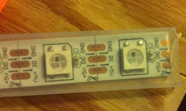 La parte más difícil de hacer la tira de LED está pensando a través de los cables de enrutamiento para obtener la longitud correcta.