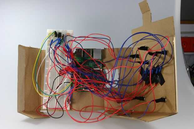 Die bisher zusammengebauten Komponenten bilden die Steuerzentrale unseres Familienportraits - Bildschirm und Kamera werden später angeschlossen. Ahora cuanto das Gehäuse für das frambuesa Pi. Ésta kannst du im Rahmen este tutoriales aus einer alten Pappschachtel bauen. Cae du die verwendest von HD-Webcam Microsoft, kannst du die Verpackung zum Bau eines Gehäuses disfruta - perfekt für einen ersten Prototypen!