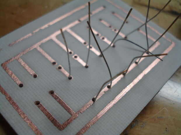 Introducir todo el componente conduce en los agujeros de la PCB y lo de la soldadura.
