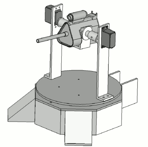 Utiliza dos motores servos, dos rodamientos, madera y plexiglass.