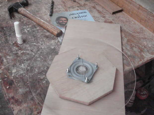 Coloque un trozo de redondo cortar plexiglás el cojinete de empuje.