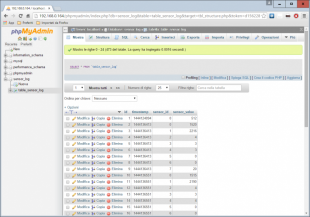 Cuando ejecutamos el script se leerá el valor de los sensores y a través de la función insert_to_db los valores se guardan en la base de datos.