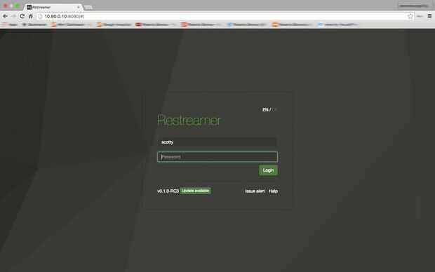 4. Inicie el Datarhei/Restreamer con el nuevo comando con el nombre de usuario: scotty y la contraseña: enterprise