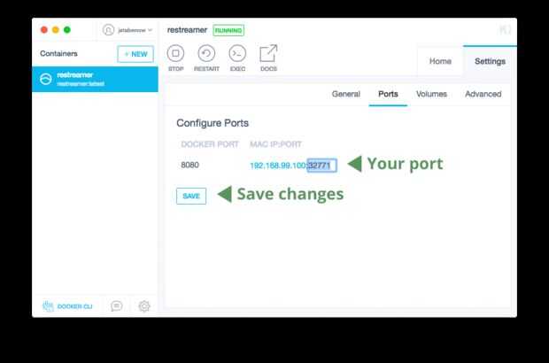 Ejemplo para Kitematic/VirtualBox: Seleccione un puerto personalizado como 31000