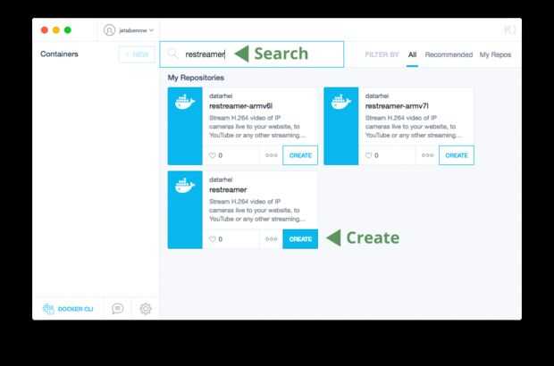 La búsqueda para: "restreamer" y seleccione el "restreamer" imagen sin el "brazo-"-etiqueta.