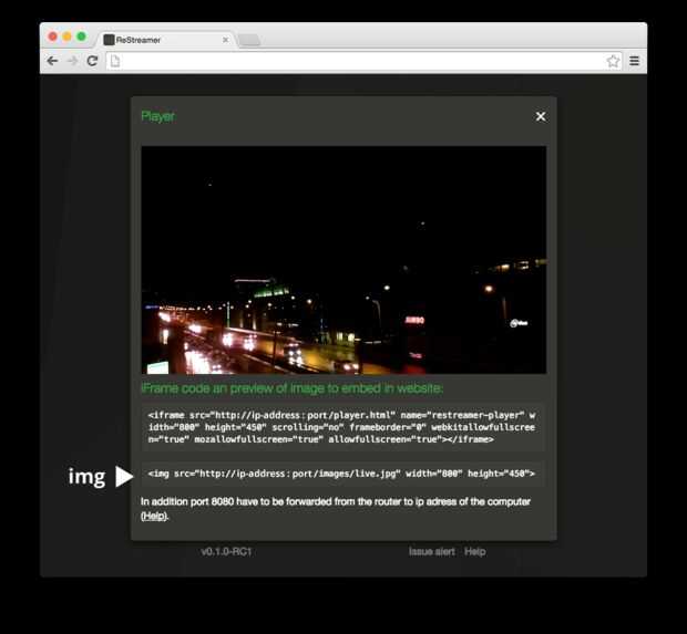 La instantánea es una cosa muy agradable por ejemplo, enlace de la "casa" de su sitio web en el sitio donde se agrega el reproductor de vídeo. Se actualiza automático cada 60 segundos y da al visitante de su sitio web una corriente escuchar de tu video . Limpias cosas podrían hacerse con una instantánea como lapso de tiempo, creación de archivos de su cámara o toman la foto como fondo en tu web.