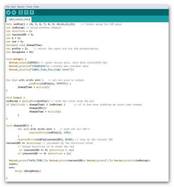 Más ajustas el pote de los grandes puede hacer los cambios de tiempo registrados en Excel, pero tenga cuidado de no ir demasiado lejos o no podrás ver los datos en el otro extremo de la escala (es decir, cuando expone el LDR a la luz otra vez)