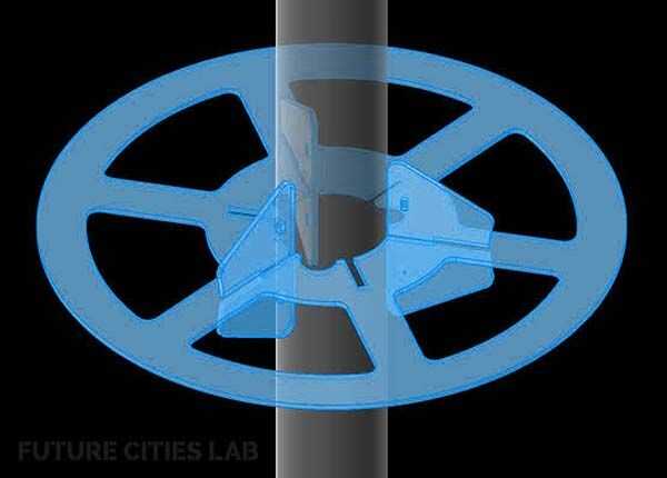 Los aros interiores son láser cortar madera contrachapada con tirantes ajustables. Las aberturas de las llaves permiten ataduras de cremallera resistente apretar el anillo al mástil, fijación en vertical. Las aberturas de los anillos permiten cableado correr por el mástil.