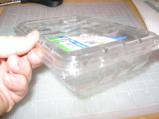 reutilizar un envase de arándanos para la celebración de sus palos de datos flojo y desorganizado. Fácil de hacer. Paso 1, elija un cuadro fino de arándano. Paso 2, parte superior y colocar sobre una estera de corte y corte rectángulos de una pulgada en la parte superior, tres filas, a mi me funcionadas. Paso 3, una bandeja de manicotti se ajuste dentro, por lo que corte para insertar en la caja, le ayudará a aguantar palos. Corte y ajuste interior. Paso 4, bloquear arriba y organizar las tiras hacia usted. Disfrutar.