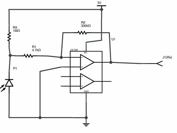El circuito del transmisor se conecta al pin Tx serial en uno de los RaspberryPis y el circuito receptor al pin Rx serial en el otro Pi. Usted puede tener un transmisor y un receptor en cada RaspberryPi, sólo tienes que duplicar la cantidad de componentes.