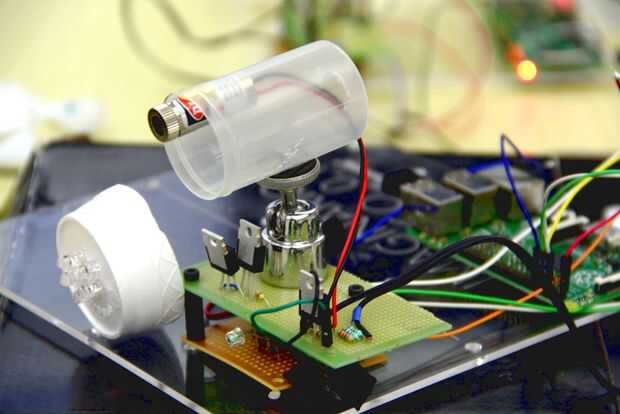 Aquí no hay secretos. Una cosa a notar es que utilizamos 6 fotodiodos en paralelo. Esto aumenta el área de "contacto" para el receptor y también aumentó la cantidad de corriente se genera por los fotodiodos. También descubrimos que cubriendo todos los fotodiodos con un plástico semi transparente también aumentaron el área de recepción y mejoraron la resistencia del receptor a los movimientos.