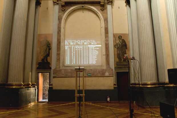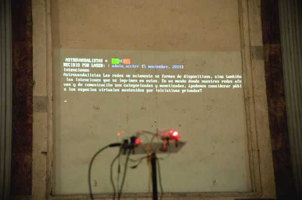 La instalación consistió en una modificación router WiFi encaramado en lo alto de una iglesia que se ha convertido en un centro cultural y espacio de exposición. El router realiza un seguimiento de lo que las clases de sitios y los datos accediendo a través de la red WiFi y transmite esa información a través de láser hasta un proyector.