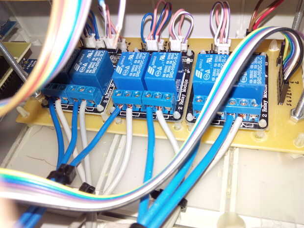 Antes de conectar 220v a relés, probar relés con dispositivos de tensión baja, como lámparas de 9v y comprobar que todo funciona bien. Entonces la caja del proyecto.