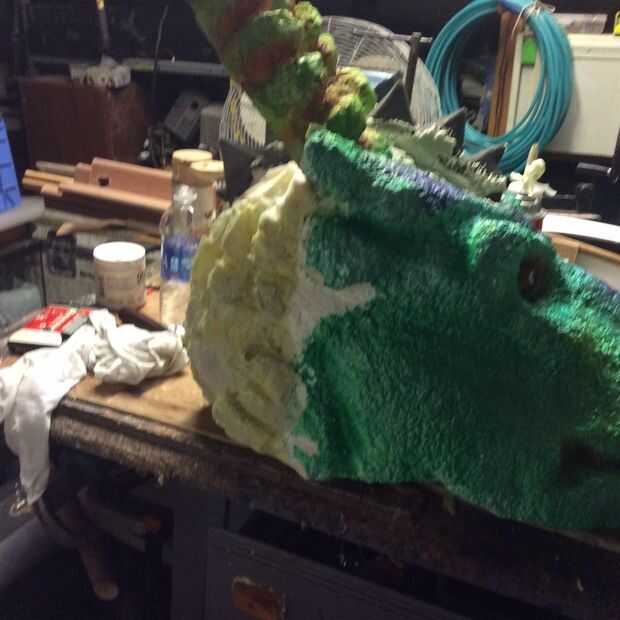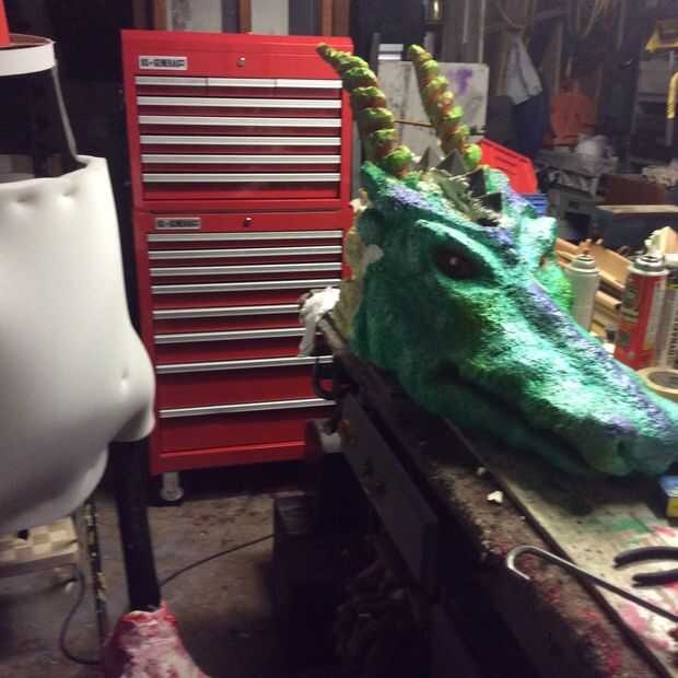 waaaalaaa dragón usa a tela que usted puede ver a través de donde he dejado la goma espuma a nivel de la cara.