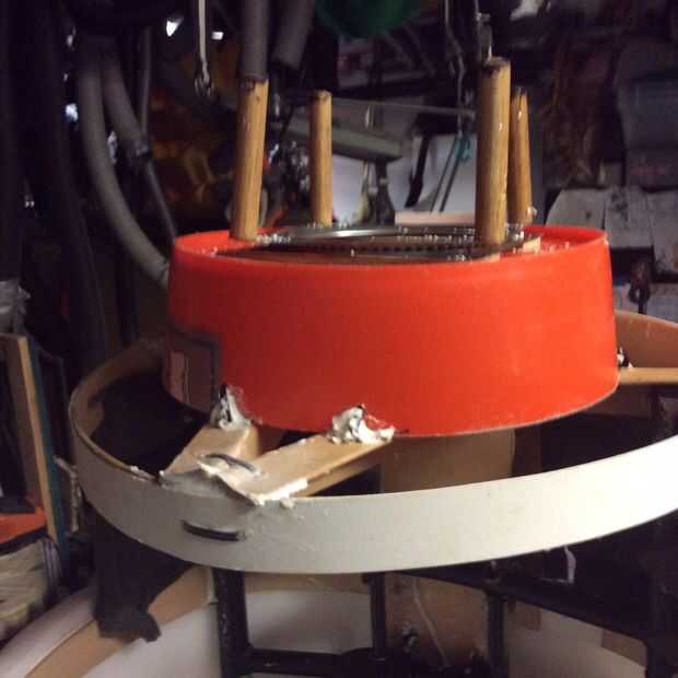 Utiliza un cubo cortado la mitad con dows pegados y atornillados en la parte inferior para sostener la cabeza
