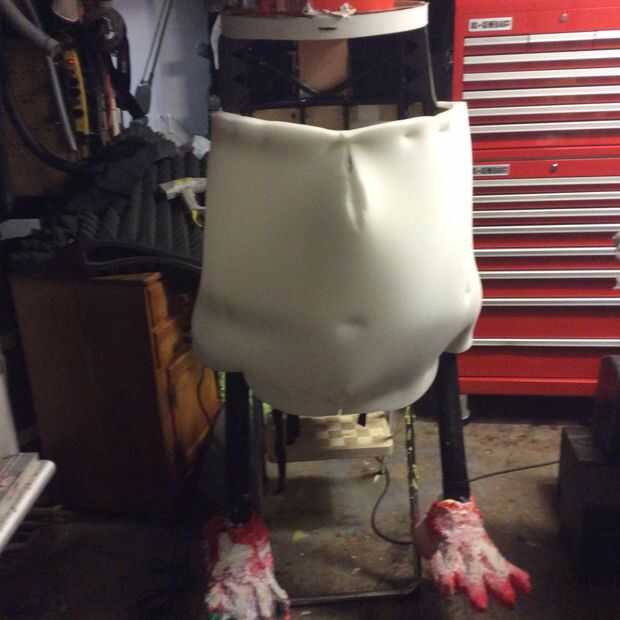 Talló la cabeza de espuma de grano agregando algunos aerosol espuma aquí y allá donde sea necesario. Cabeza pintada y añadido brillo a la tela.