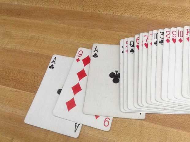 Antes de realizar el truco, colocar una tarjeta solicitada (yo uso el Ace of Clubs) en segundo lugar de la parte superior de la cubierta. Luego, coloque una tarjeta idéntica de la otra bandeja en la parte superior. La orden debe ir así: tarjeta indiferente [as de Bastos,], [Ace of Clubs], entonces el resto de la cubierta.