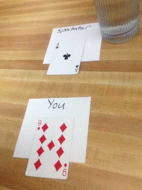 Instruir al espectador a su carta y la vuelta tuya simultáneamente. Serán completamente asombrados de que las cartas parecen que han cambiado por arte de magia!