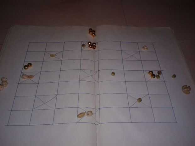 2) en el primer arranque cuando el jugador pone 1(thayam) luego lo único capaz de poner su moneda 1 en su casa. Después de todas las otras monedas hacia fuera en el juego pueden traer de vuelta al juego cuando pones 1 o 5.
