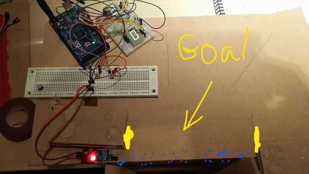 Una meta se detecta cuando las Puc interupts el IR de la viga y pueden utilizarse para incrementar el puntaje de entrada digital de Arduino.