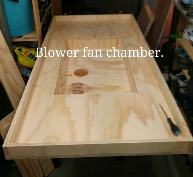 Siguiente la caja del ventilador soplador, 80 x 50 x 10 cm (longitud x anchura x altura) pegados y atornillados.