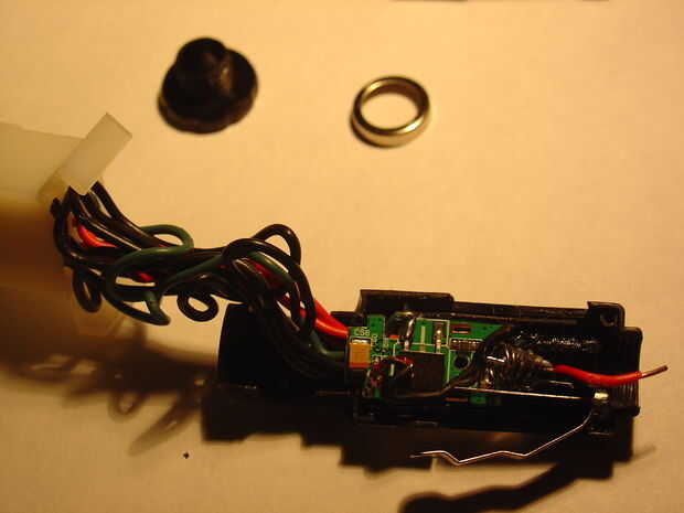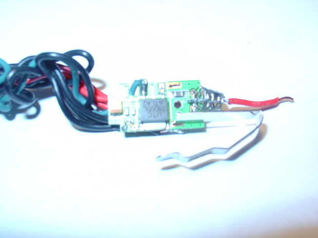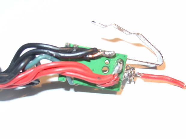 cables en la parte inferior de donde se conecta el resorte con la placa de circuito. Los tres negros de la soldadura